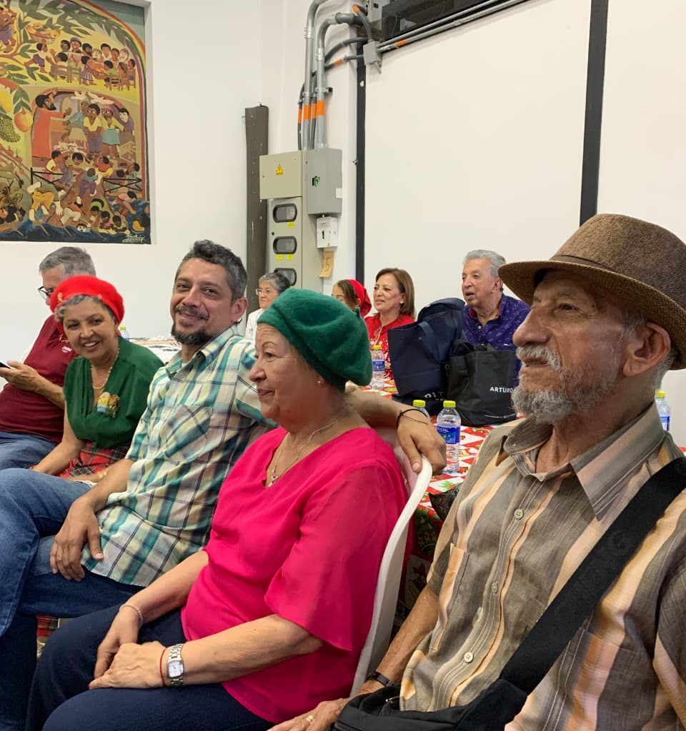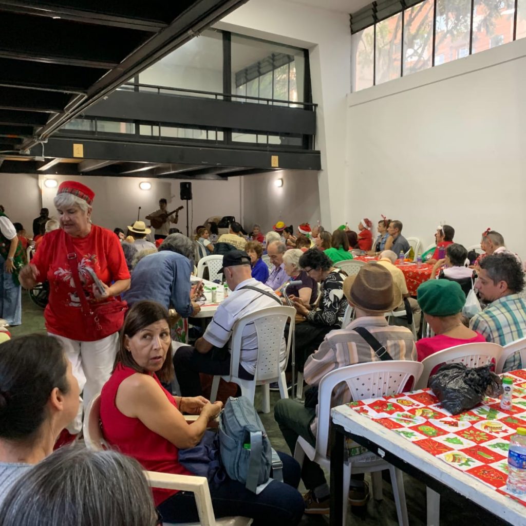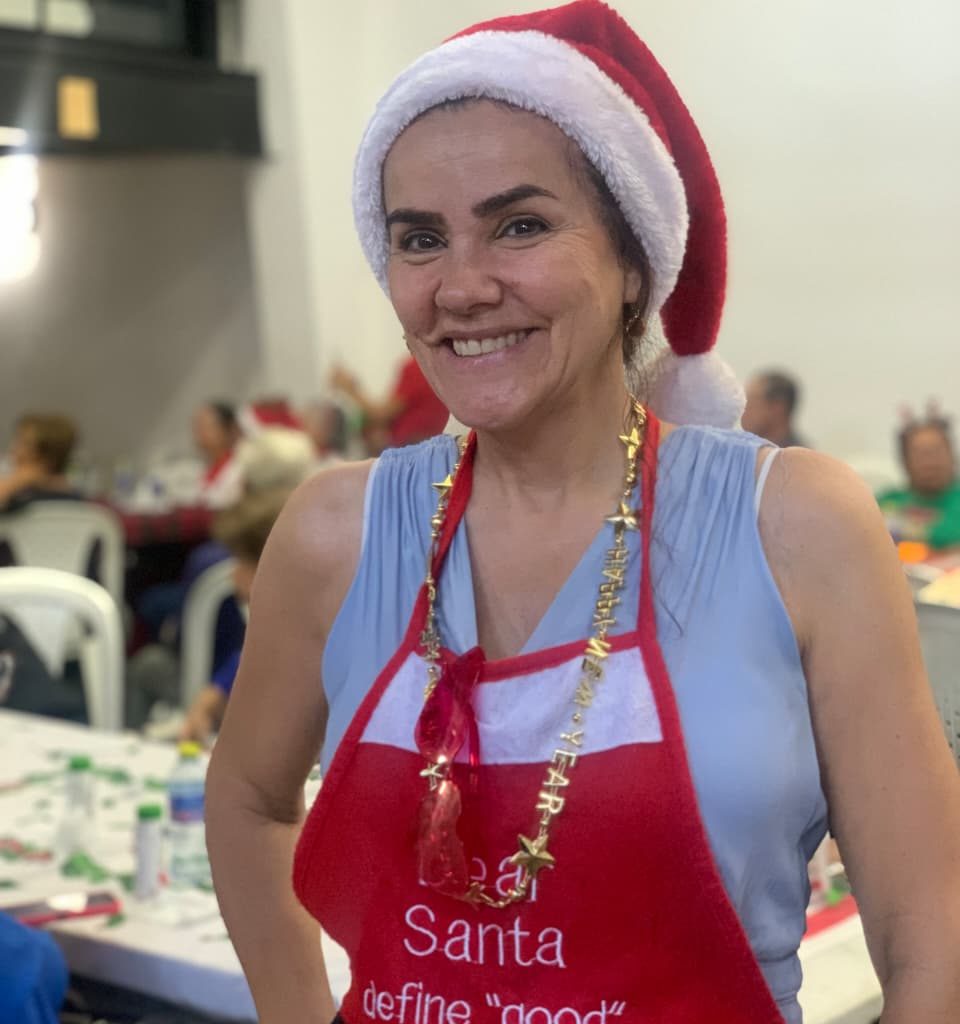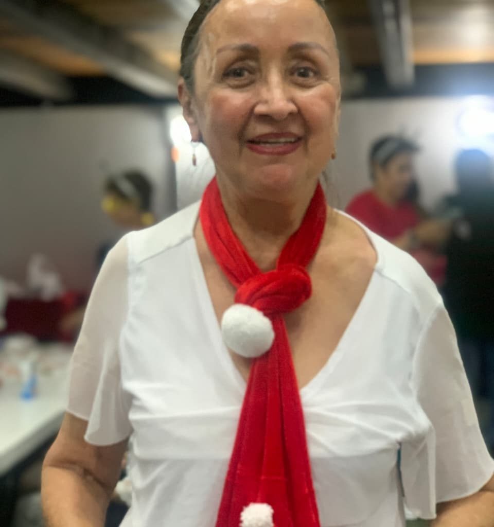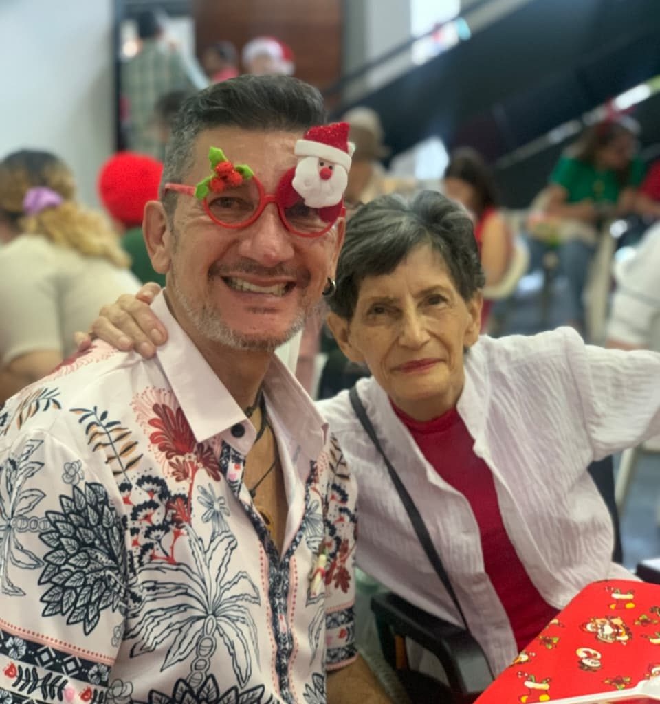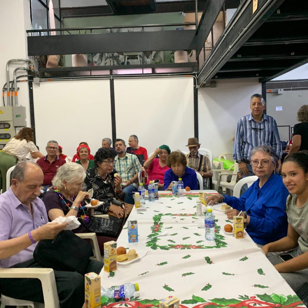 El ambiente estuvo vestido de fiesta: mesas decoradas con colores navideños, luces, y asistentes que llegaron con gorritos navideños, ropa roja o verde, sumándose a la magia de la temporada. Además, un hermoso dueto musical alegró la tarde con canciones que despertaron recuerdos, emociones y mucho espíritu navideño.